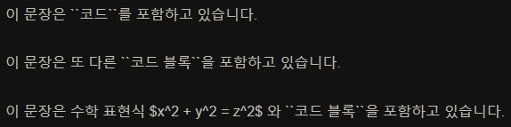 <p>이 문장은 또 다른 ``코드 블록``을 포함하고 있습니다.</p>