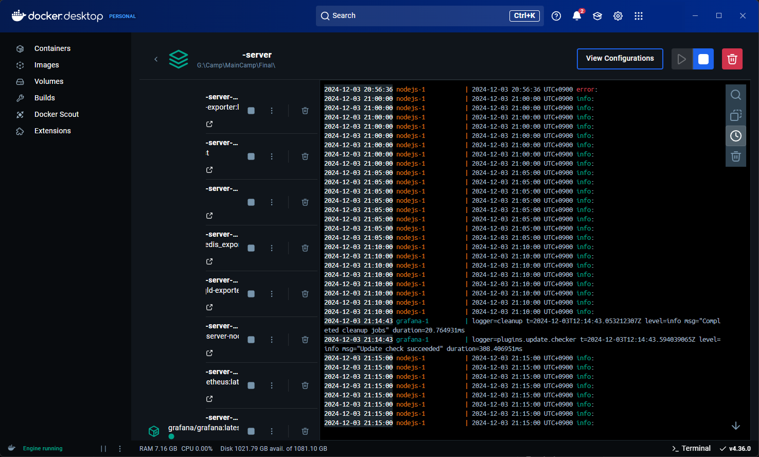 하다 보니 익스포터마저 별개 컨테이너로 빠지게 됐는데, 이게 괜찮은지에 대해선 생각을 좀 해봐야 할 것 같다.