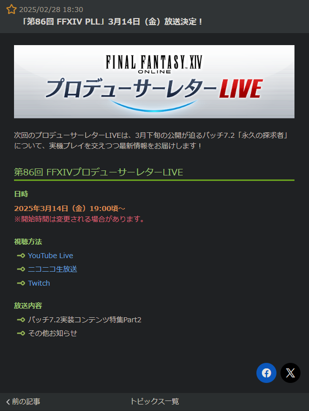 [「第n回 FFXIV PLL」m月dd日(金)放送決定!]
