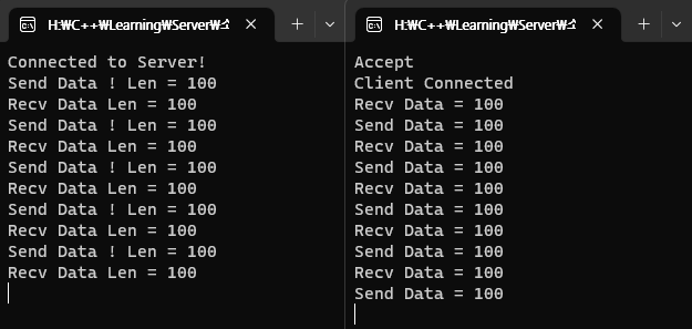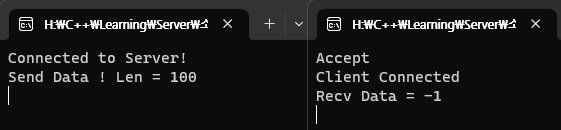 this_thread::sleep_for(1s)를 클라이언트에 추가하여 서버가 올라올 시간 동안 대기하게끔 해 주면 된다.