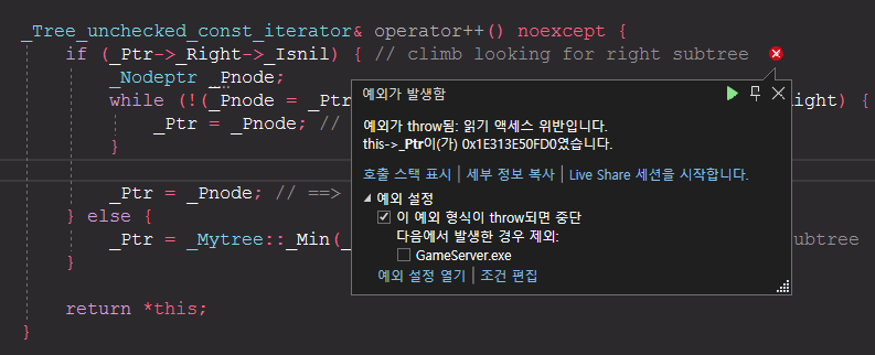 Set(Multiset)은 Binary Serach Tree구조로 이루어져 있기 때문에 트리와 관련한 부분에서 문제가 생긴 것이었다.