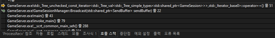 Broadcast() 함수에서 뭔가 문제가 생겼다는 것을 알았다.