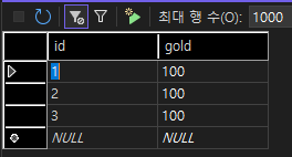 - 뽑아내려고 하는 데이터는Id와Gold이기 때문에 각각 바인딩한다. - 쿼리문 실행